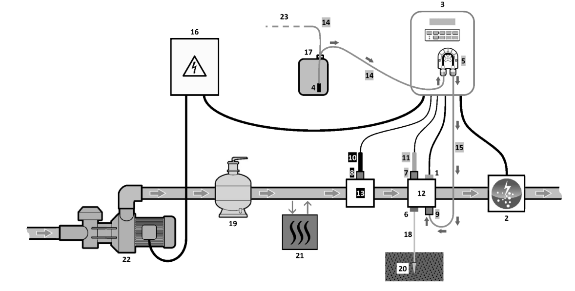 ▪ Opcjonalna kontrola ORP (zestaw P&P) do automatycznej regulacji produkcji chloru