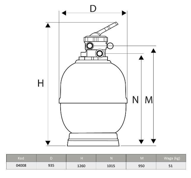 Filtr basenowy TEBAS SYRIUS oferowany z zaworem górnym .Maksymalne,chwilowe ciśnienie 2bar.Wymiana złoża piasu co 2 lata,a złoża AFM co 8-10lat.