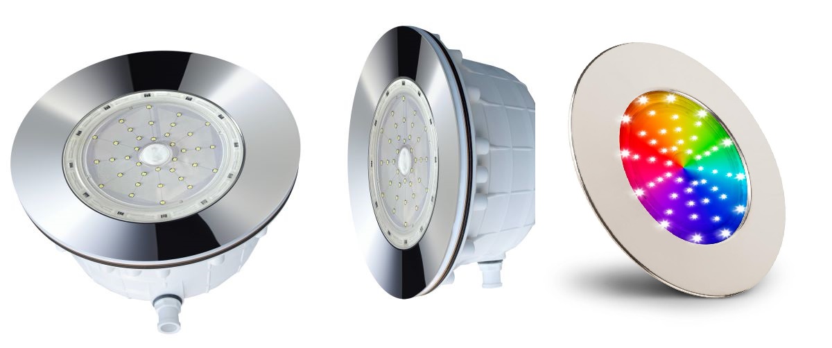 Lampy basenowe są dobierane na podstawie wielkości basenu.Dla uzyskania dobrego oświetlenia przyjmuje się wzór 1-5W,m2 powierzchni wody, 100-500lm/m2 ,Led RGB ok 2-7 W,m2 powierzchni wody.Oświetlenie LED ,to inwestycja ,która zwraca się szybko w kosztach eksploatacji,brak obsługi serwisowej ,niskie zużycie prądu.