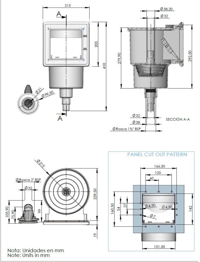 Mini skimmer ABS w komplecie z przyłączem węża .Mini skimmer do basenów wykonany z wytrzymałego tworzywa, przeznaczony do basenów ze ścianą z tworzywa lub stali. Przepływ 5 m3/h. Nie nadaje się do basenów murowanych.