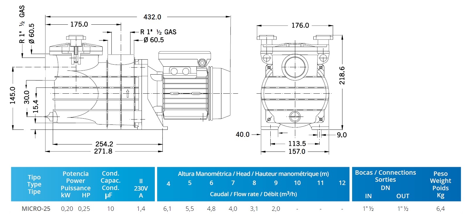 Pompa basenowa przepływ: 10m3/h , klasa izolacji: F ,stopień ochrony :IP55 , silnik 50 Hz/2900 rpm z opcją 60 Hz ,maksymalna temp. wody: 40 °C.