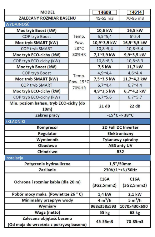 – zależnie od temperatury basenu i temperatury otoczenia, pompa ciepła
