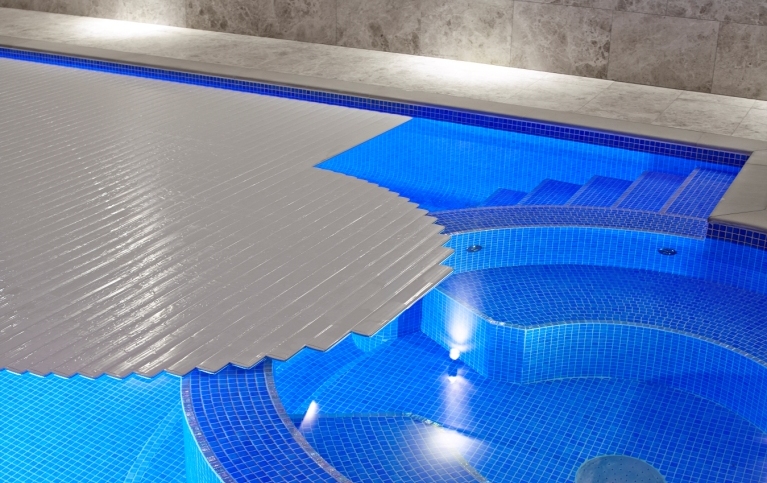 Połączone ze sobą profile ,tworzą sztywną pokrywę,która jest dodatkowym zabezpieczeniem przed wpadnięciem do wody.Profile są szczelnie zamknięte za pomocą zatyczek zamontowanych na zakończeniach.Żaluzje basenowe nie wymagają żadnych prowadnic,żaluzja pływa jak pokrywa po wodzie.Do wszystkich żaluzji stosuje się elektryczne rolki zwjające,nadwodne oraz podwodne.Nie da się zwinąć rolety ręcznie ze względu na jej dużą wagę.