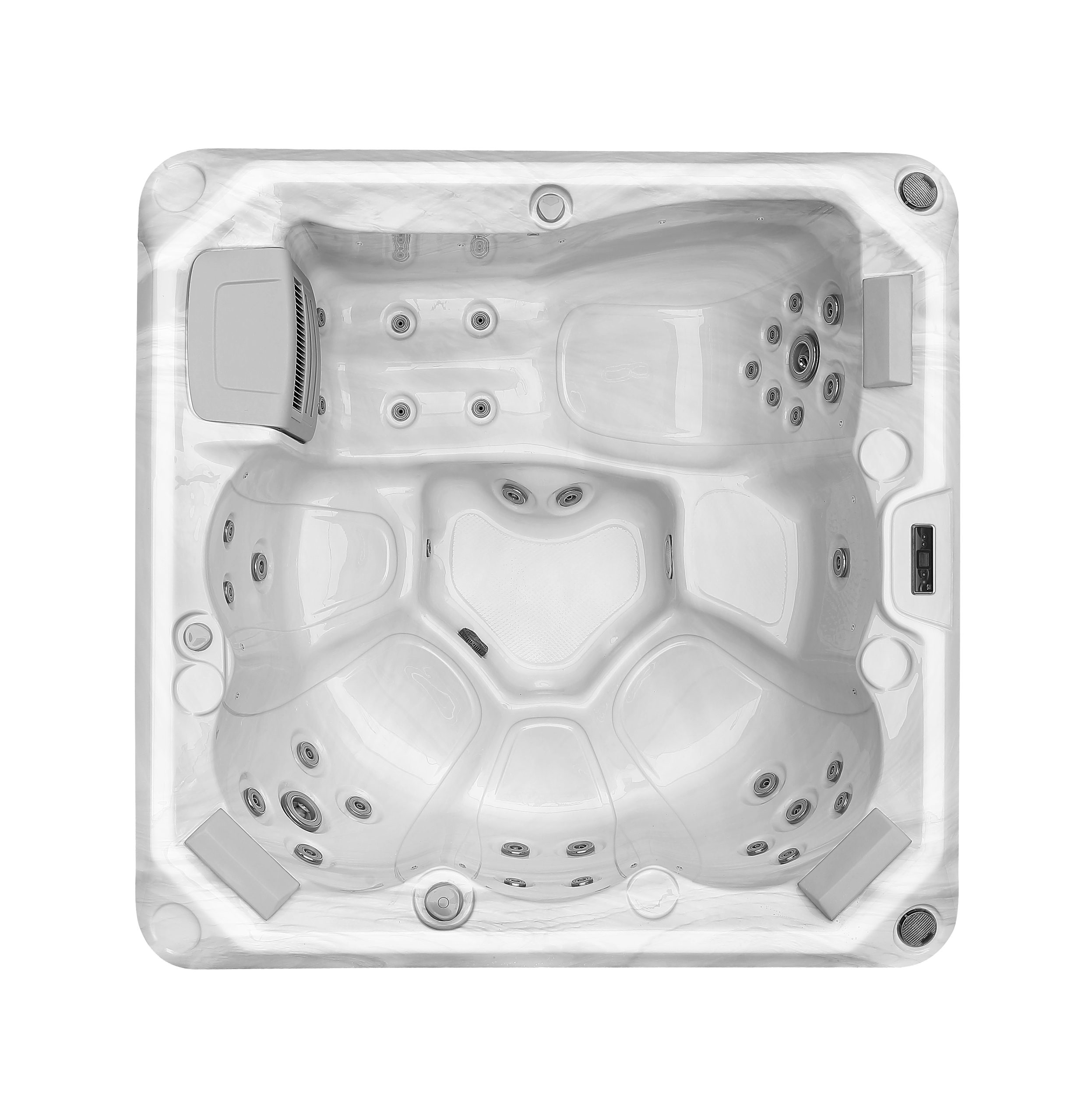 6-osobowa (5 miejsc siedzących+ 1 leżak)Wymiar: 2m x 2m x 0,88m.Amerykański akryl LUCITE w trzech kolorach do wyboru.System sterowania GECKO made in Canada.35 dysz masażu.Pompa masażu 2,2kW =3HP 230V (ze zmienną prędkością).Podgrzewacz USA Balboa 3kW.Podwójny zestaw filtracji z ozonatorem.Wodoodporne głośniki z funkcją Bluetooth.Konstrukcja ze stali nierdzewnej.16 mini Led RGB.4 podświetlane narożniki Led RGB.Schody.Poduszki.Obudowa z deski kompozytowej.Pełna izolacja termiczna.Waga: 310kg.Pojemność wody: 1300l.Pokrywa termiczna.Dostawa na terenie całego kraju GRATIS !Podświetlana LED RGB 16 mini LED w środku + 4 narożniki zewnętrzne !!